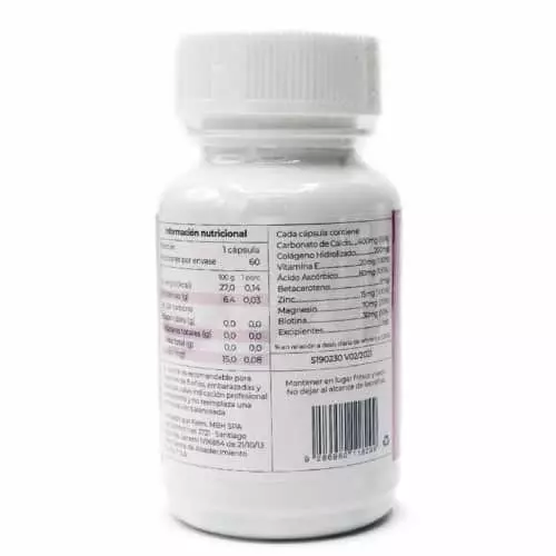 Este producto colabora en el cuidado del cabello, piel y uñas. Contiene gelatina hidrolizada que aporta los aminoácidos constituyentes del colágeno y vitamina C que favorece su formación. La vitamina E mantiene la hidratación de la piel y el brillo natural del cabello. El zinc y la biotina estimulan el crecimiento de los anexos de la piel. El calcio aporta firmeza a las uñas y el betacaroteno con su poder antioxidante ayuda en el cuidado de la piel.