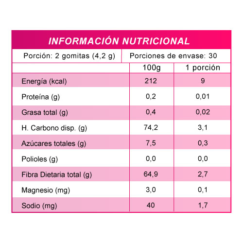 Zinc - INGREDIENTES: Maltitol, Agua, Sorbitol, Jugo concentrado de manzana, Agar agar, Jugo concentrado de arándano, Citrato de magnesio, Vitamina C, Vitamina E, Ácido cítrico, Niacinamida (Vitamina B3), Saborizante natural mora, Vitamina B12, Cera de carnauba, Biotina, Saborizante natural frambuesa, Vitamina A, SUCRALOSA, Benzoato de sodio, Sorbato de potasio, Manteca de coco, Vitamina B6, Vitamina B2, Colorante rojo allura AC, Ácido fólico.
