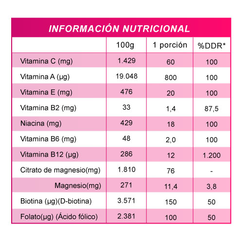 Multivitamínico especialmente desarrollado para suplir las carencias de todas las vitaminas y minerales que la mujer necesita día a día. Destaca entre sus componentes la biotina, que da elasticidad y firmeza a la piel, mejora la apariencia del cabello y fortalece las uñas, además de entregar energía inmediata para eliminar la fatiga y el cansancio del día. Con 10 vitaminas y minerales, fundamentales para mantener la buena salud del organismo y la energía del día. Sus componentes vitamínicos mejoran la inmunidad, la función cerebral, estimula la reproducción celular y detienen el efecto de los radicales libres. - MODO DE CONSUMO: Consumir 2 gomitas al día en cualquier horario